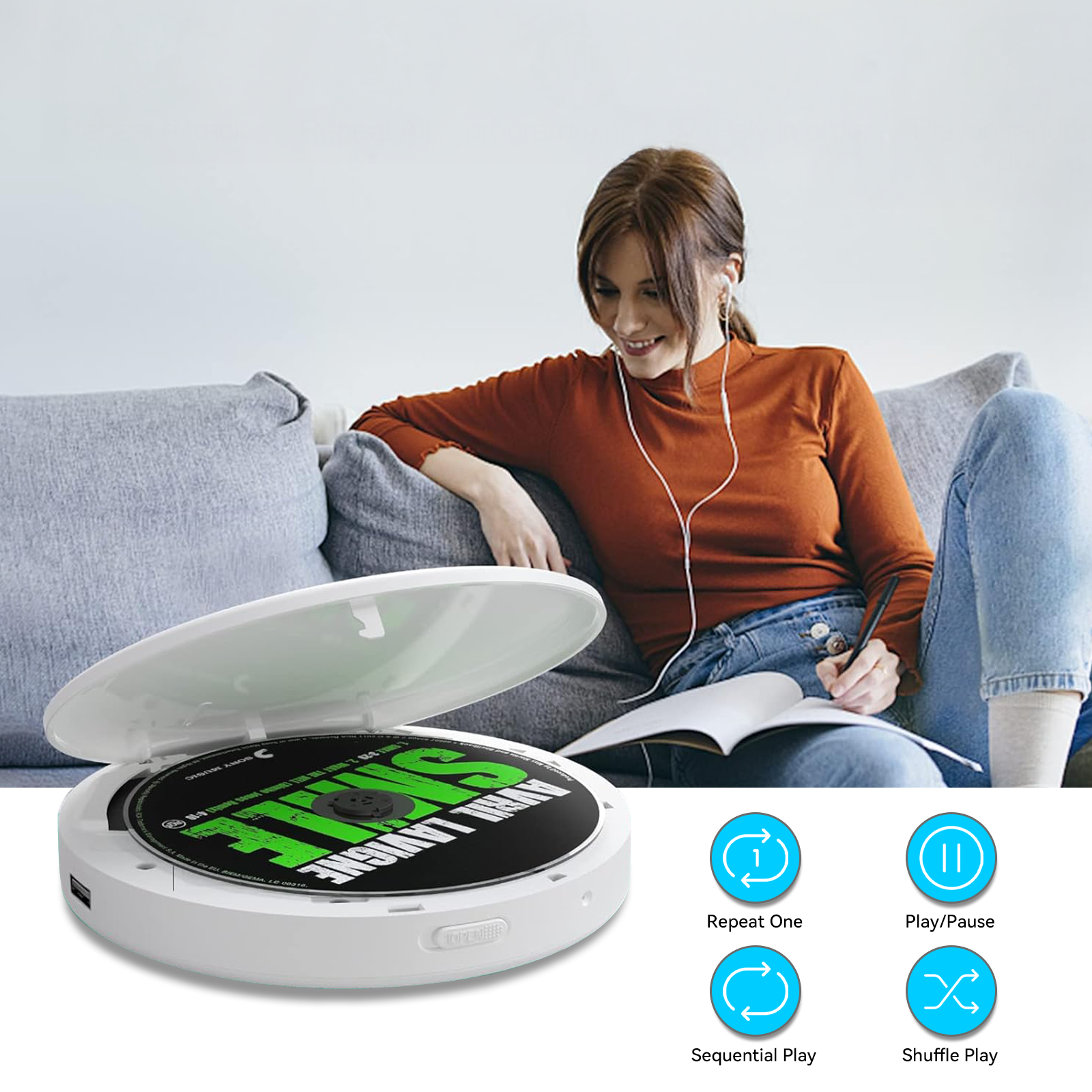 The Smileboxy CD player supports Bluetooth and USB playback, allowing you to enjoy high-quality sound in your car. Whether on a long road trip or a short commute, the anti-skip function ensures stable playback while driving, filling every journey with the joy of music.