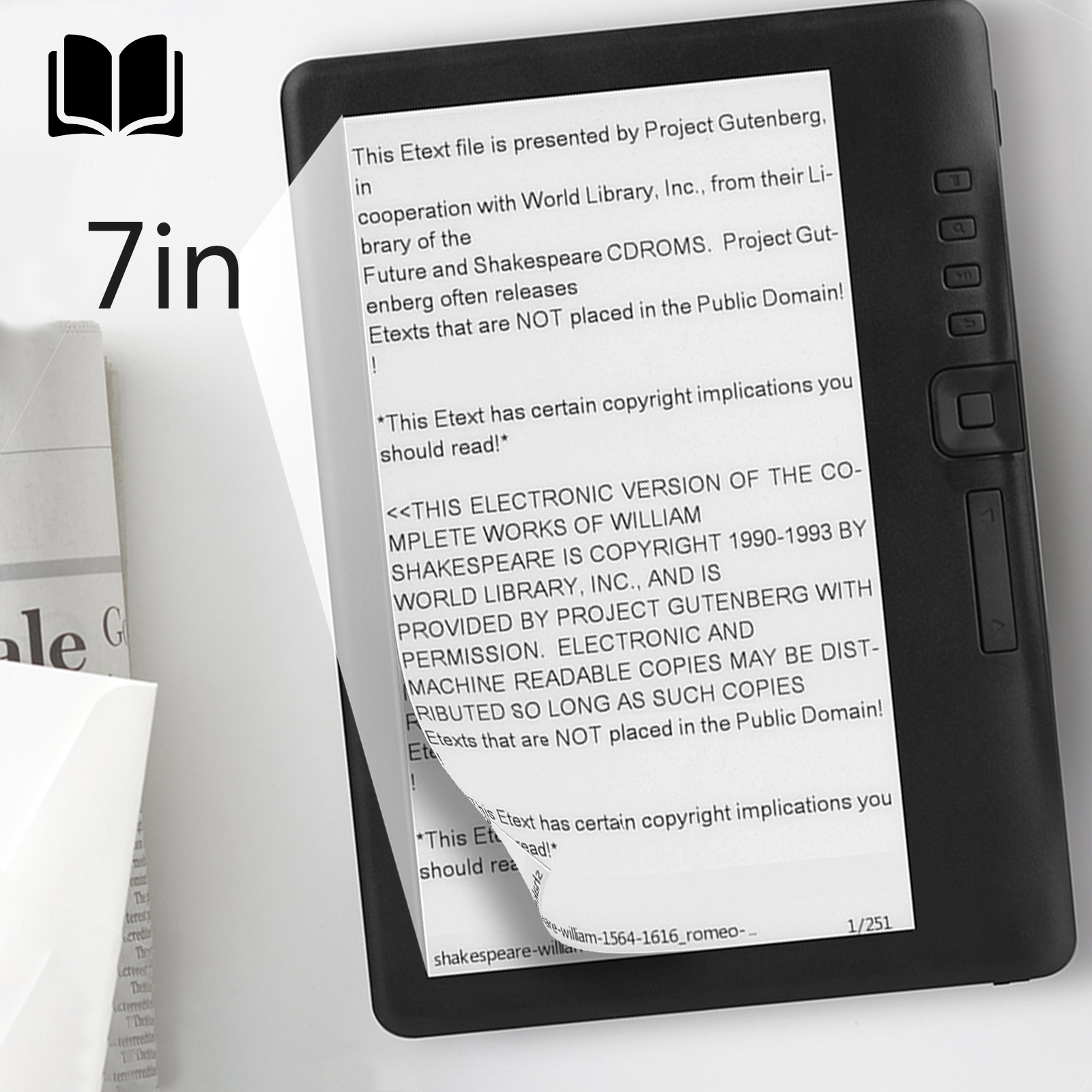 - 7-inch Eink Screen (800*480 resolution): Clear, glare-free display to reduce eye strain.
