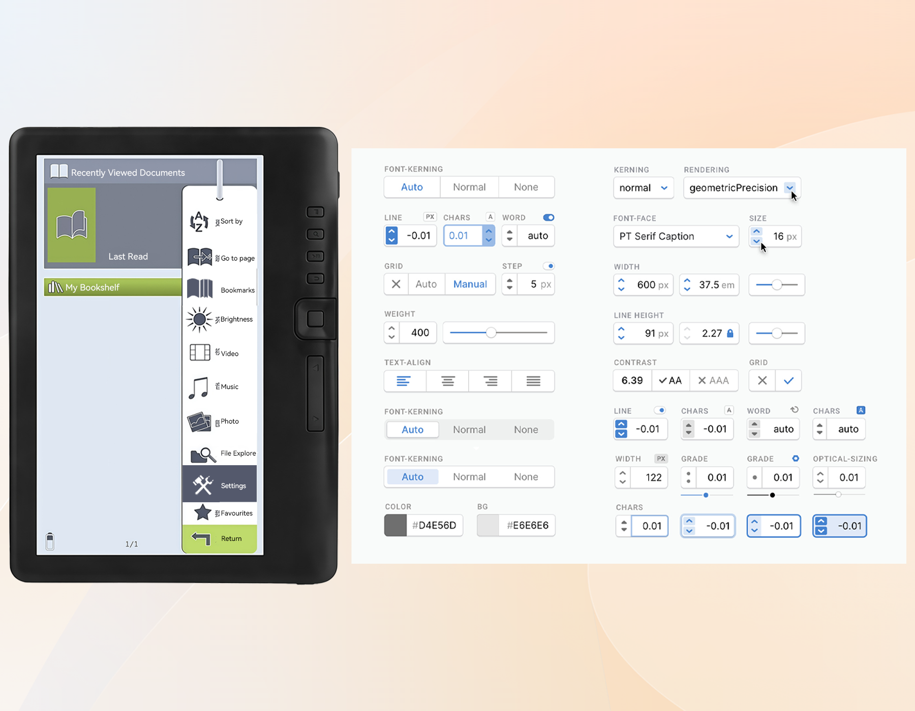 The ARM9 chip delivers robust power, and the Linux system ensures extreme stability. This perfect synergy of hardware and software brings you fluid page turns, high-definition graphic display, and a seamless experience with all features. We handle the complexity of the technology, so you can enjoy the simplicity of reading. We use a powerful core to safeguard every moment of your reading time.