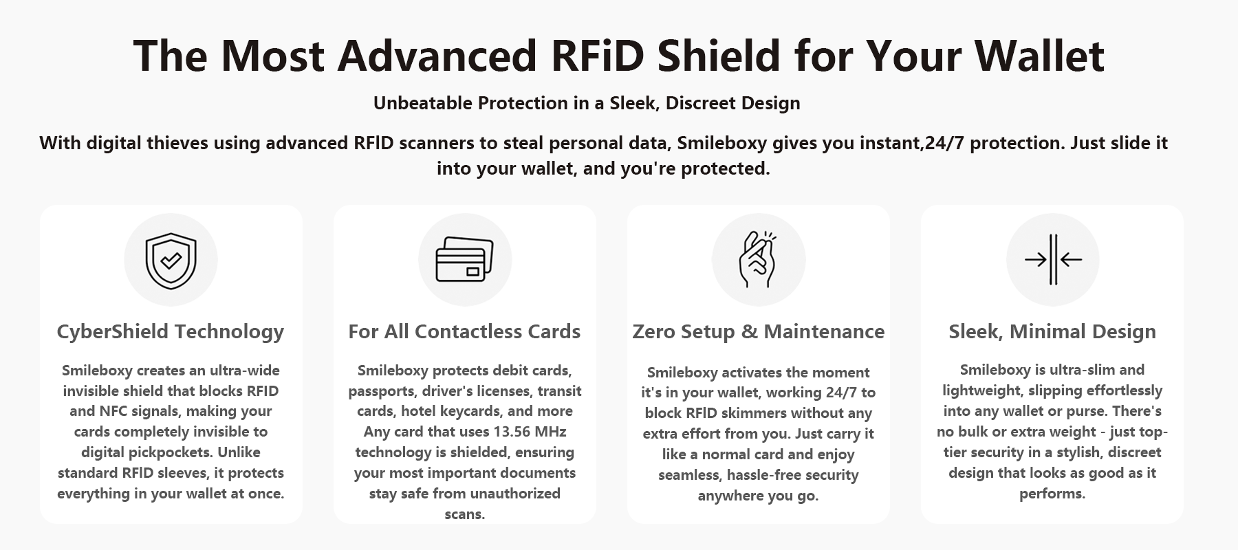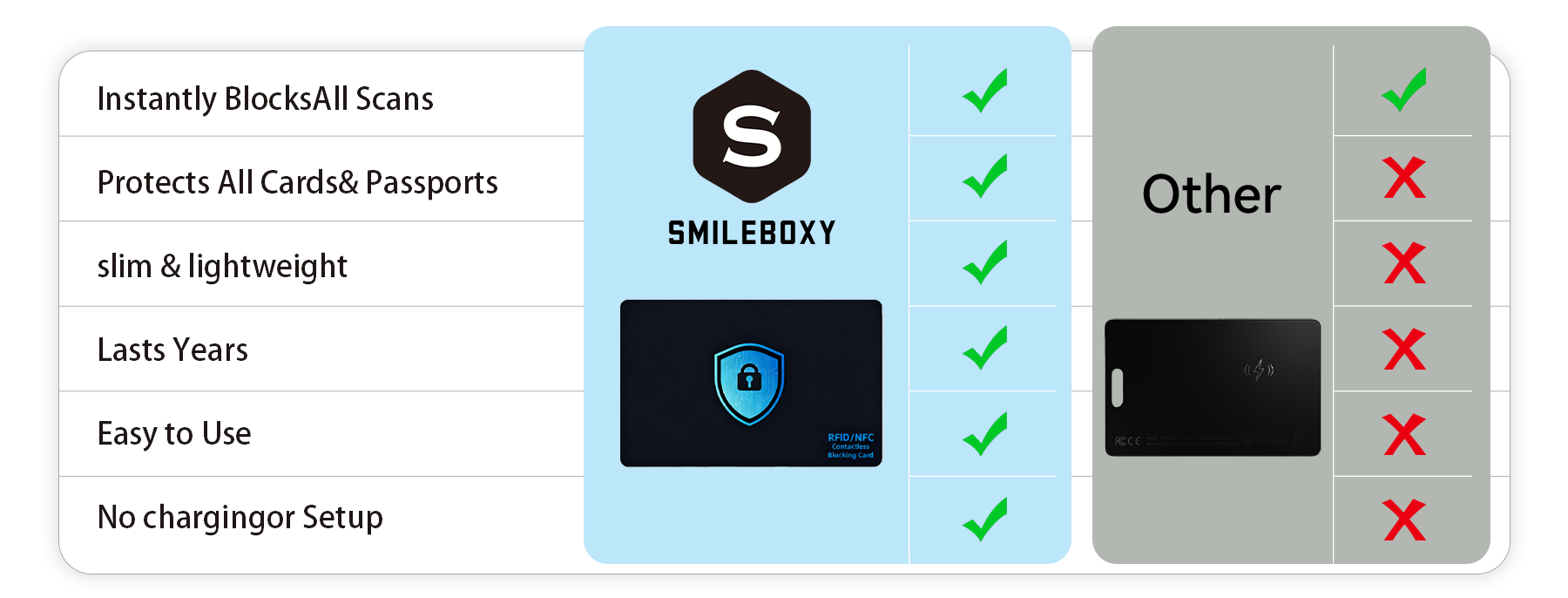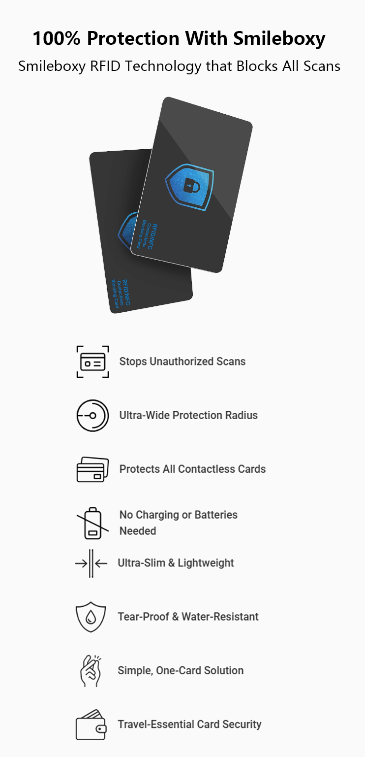 Smileboxy NFC/RFID Blocking Cards – Safeguard Every Transaction, Protect Every Moment.
